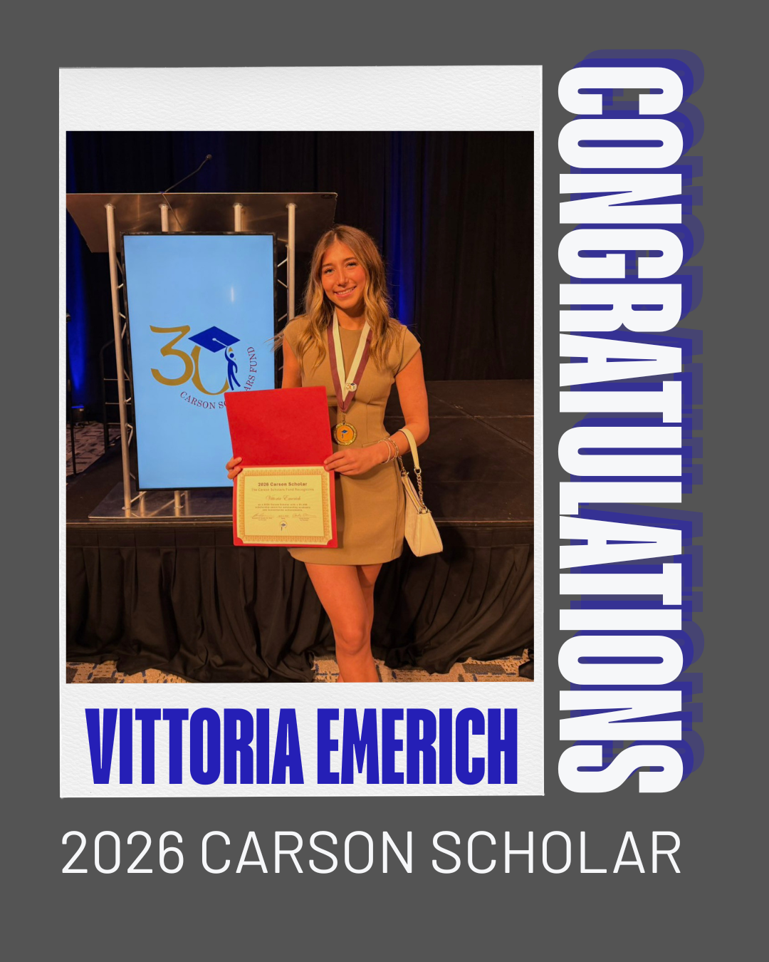 Please join us in congratulating Vittoria Emerich on being named a 2026 Carson Scholar!